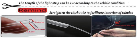 - After cutting the light strip and the tube holder according to the length you had measured,Insert the light strip into the tube holder,please be careful not to bend or crease the light strip, which will result in poor light effect.