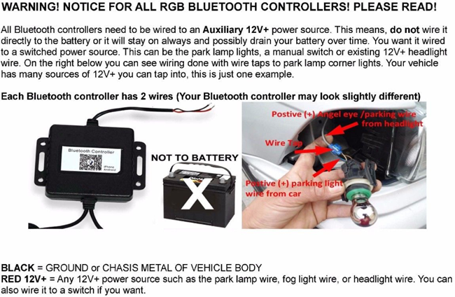 - Connect the power supply, please use 12V direct current (the red wire at the input end of the control box is positive "+", and the black wire is negative "-")