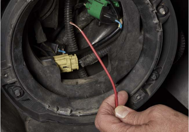 - c. Pass this red wire through the headlight bezel opening, in order to avoid pinching it when the headlight assembly is installed.