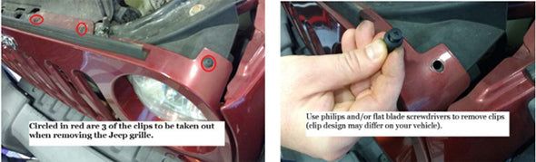The Jeep JK Wrangler fog light removal requires that the grille be removed first.