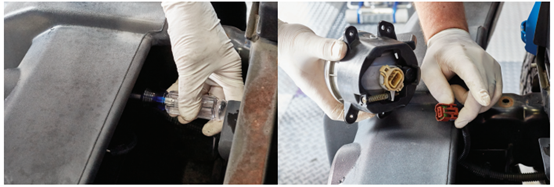 - Take the kit’s LED‐Canbus wiring connector and plug its male end into the female end of the headlamp plug‐n‐play connector.