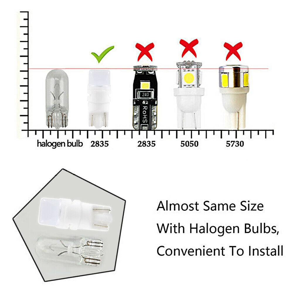 - Packing Inclue: 2 x White T10 LED Bulbs