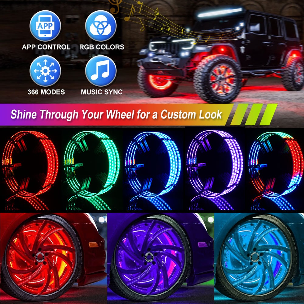 - 【Heat Dissipating Aluminum】With a heavy-duty 6061 aluminum ring underneath, the heat generated from the light strip can be dissipated 2x faster than regular wheel lights.