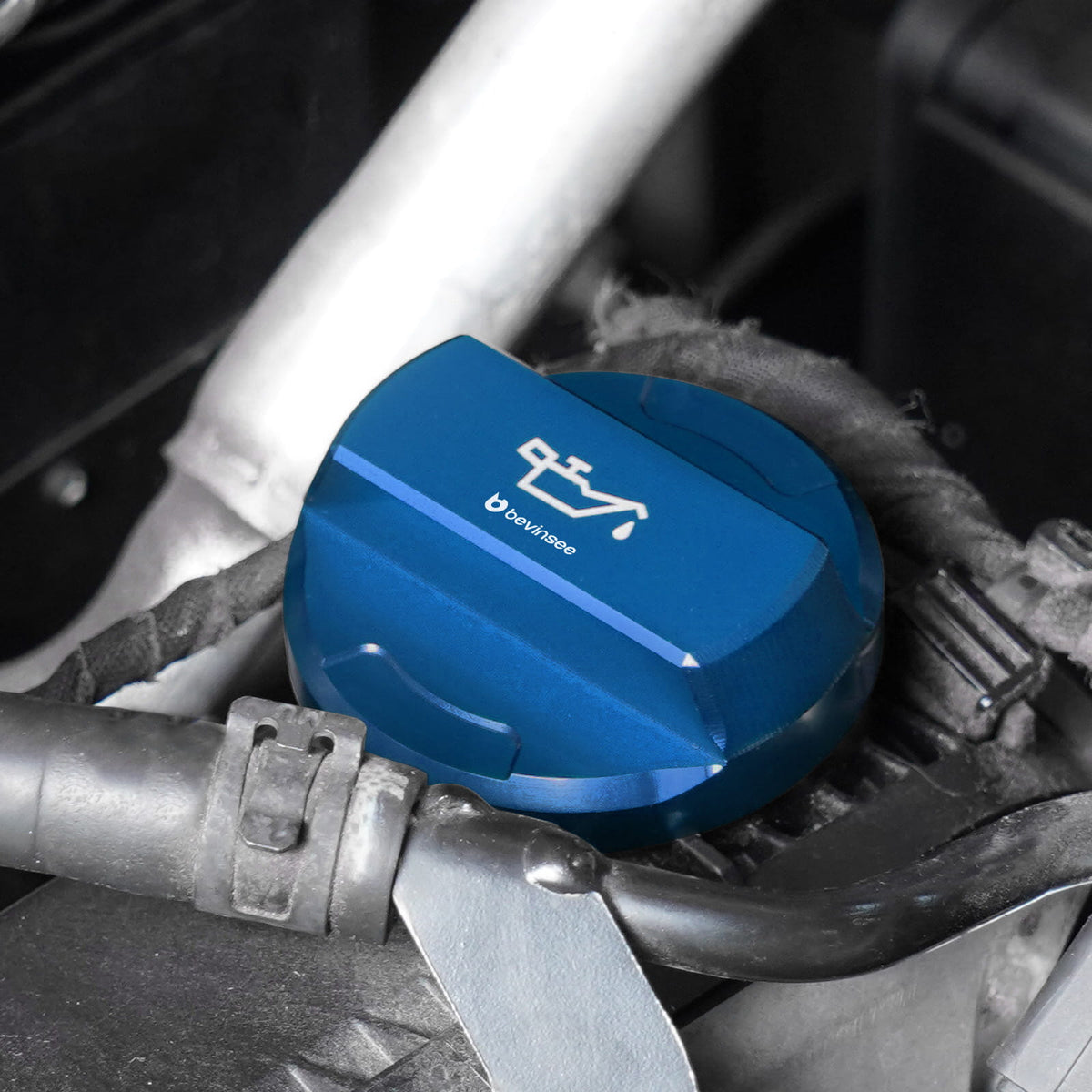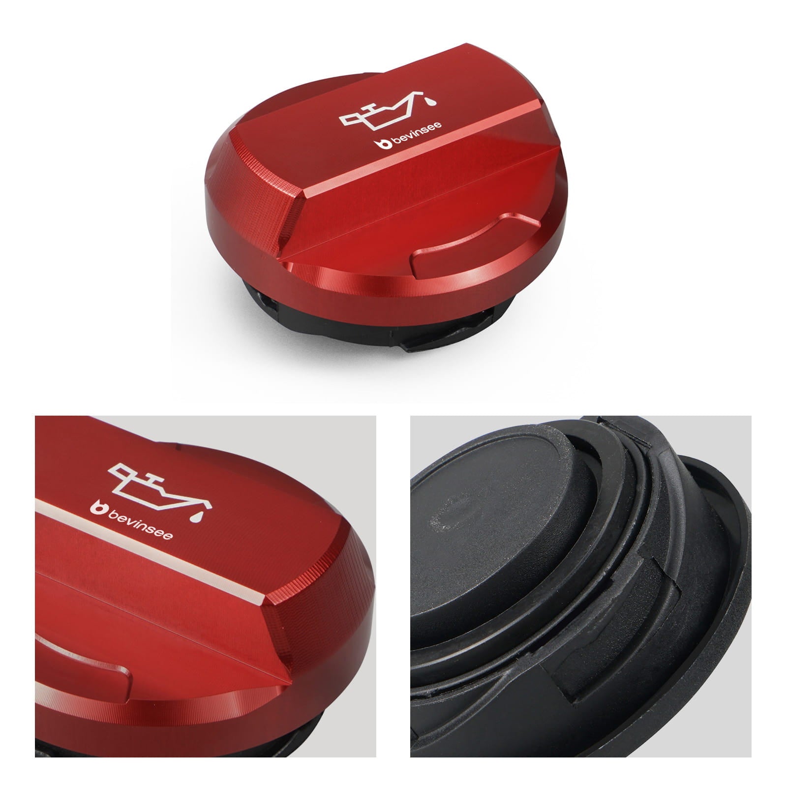 Unique Appearance Design--Available in red, blue, and black, the BEVINSEE aluminum oil filler cap adds a touch of style to your engine bay, enhancing its overall aesthetic appeal.