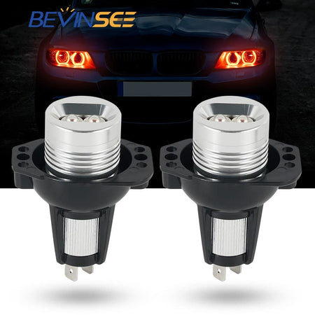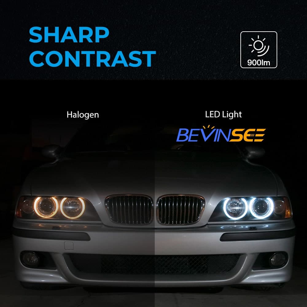 BEVINSEE Angel Eyes LED Headlight Halo Ring Light Bulbs For BMW E90 E91 3 Series