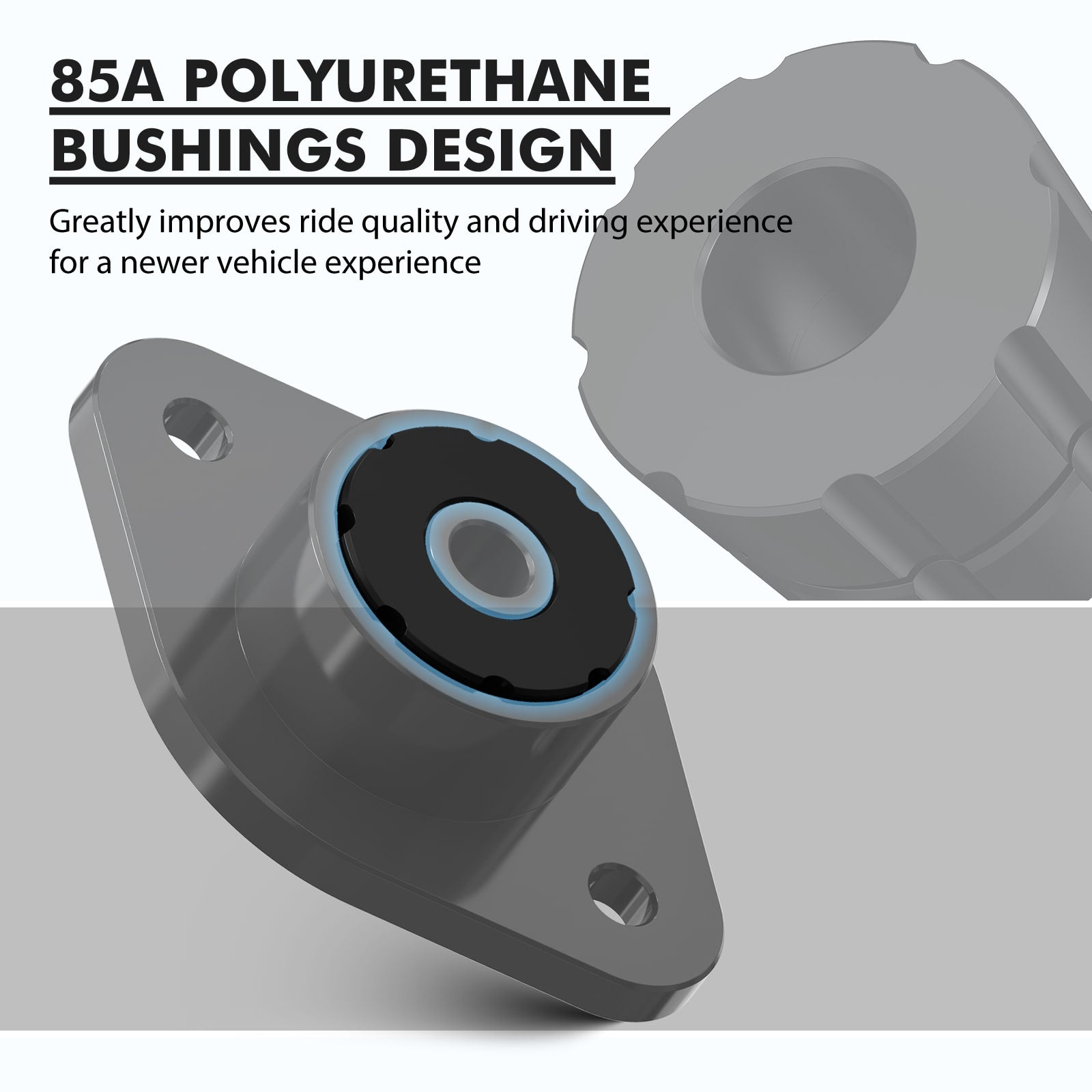 - 85A Polyurethane bushings with superior performance - Polyurethane has less compression variability, high stability, shock resistance, and aging resistance. It is superior to the common rubber in the market.