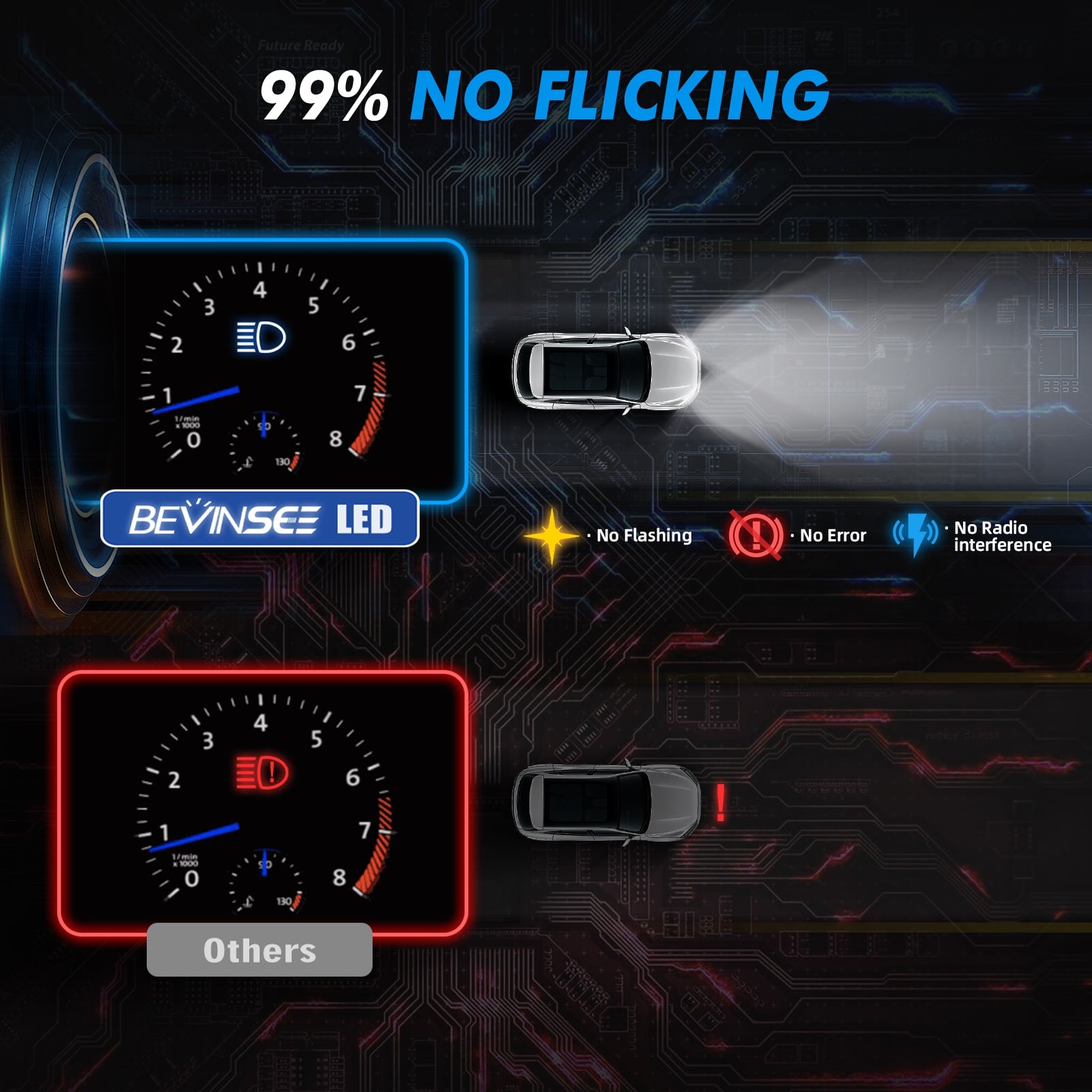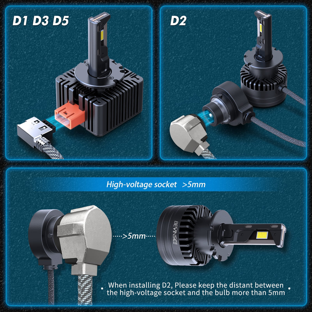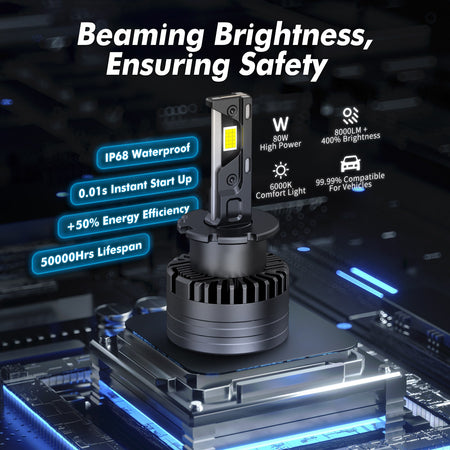 [99.99% No Flicking] Upgraded BEVINSEE D40 bulb feature a built-in intelligent IC driver compatible with 99.99% of vehicle computer systems, without errors or flickers and electromagnetic interference.