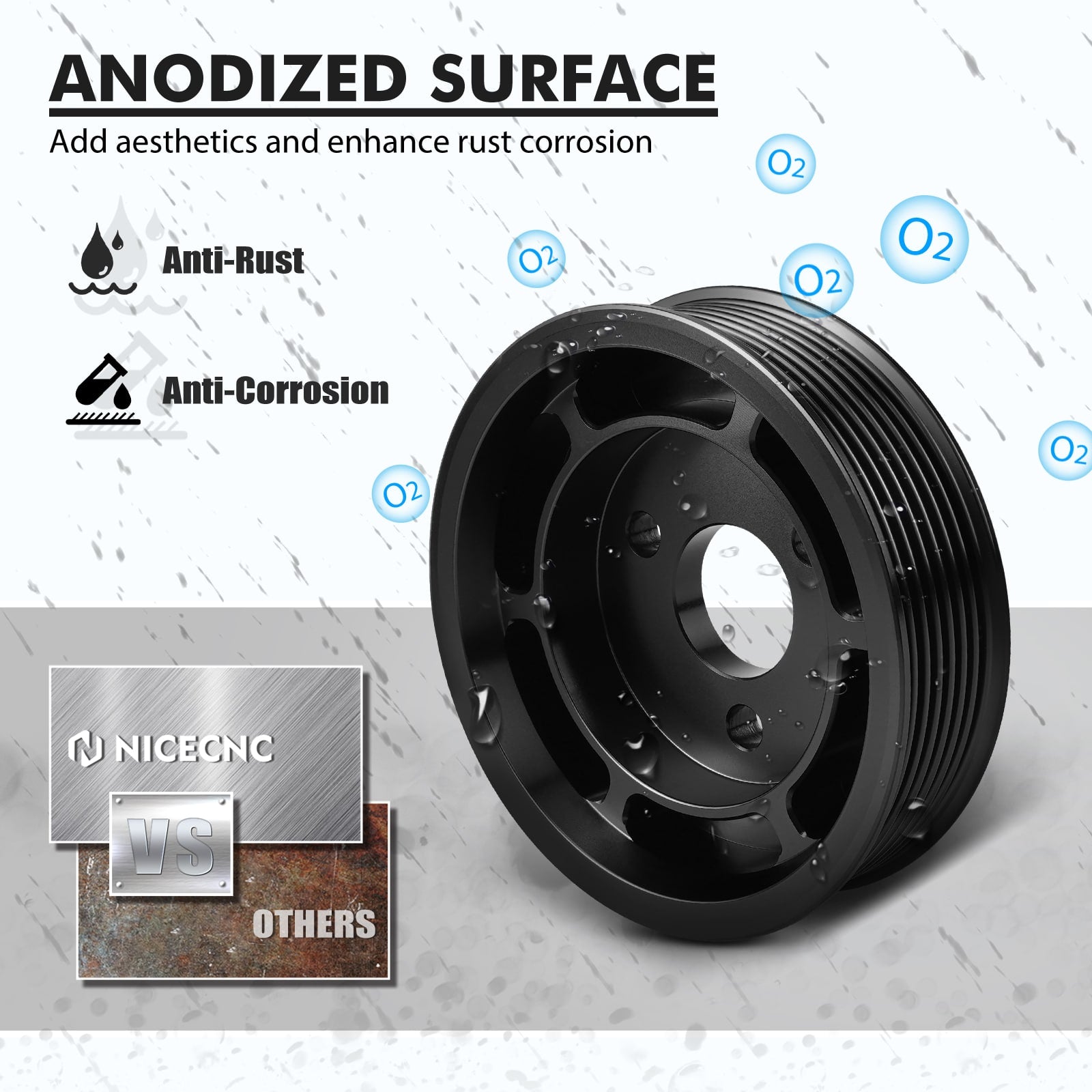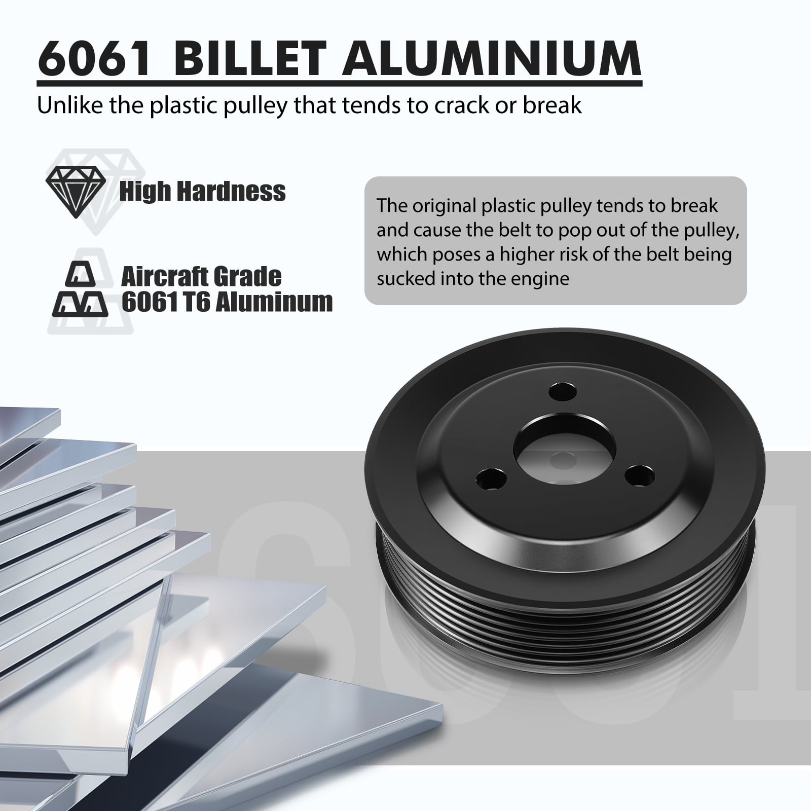 - Robust Construction - 6061 billet aluminium for great durability, CNC machined, safe to drive, unlike the plastic pulley that tends to crack or break.