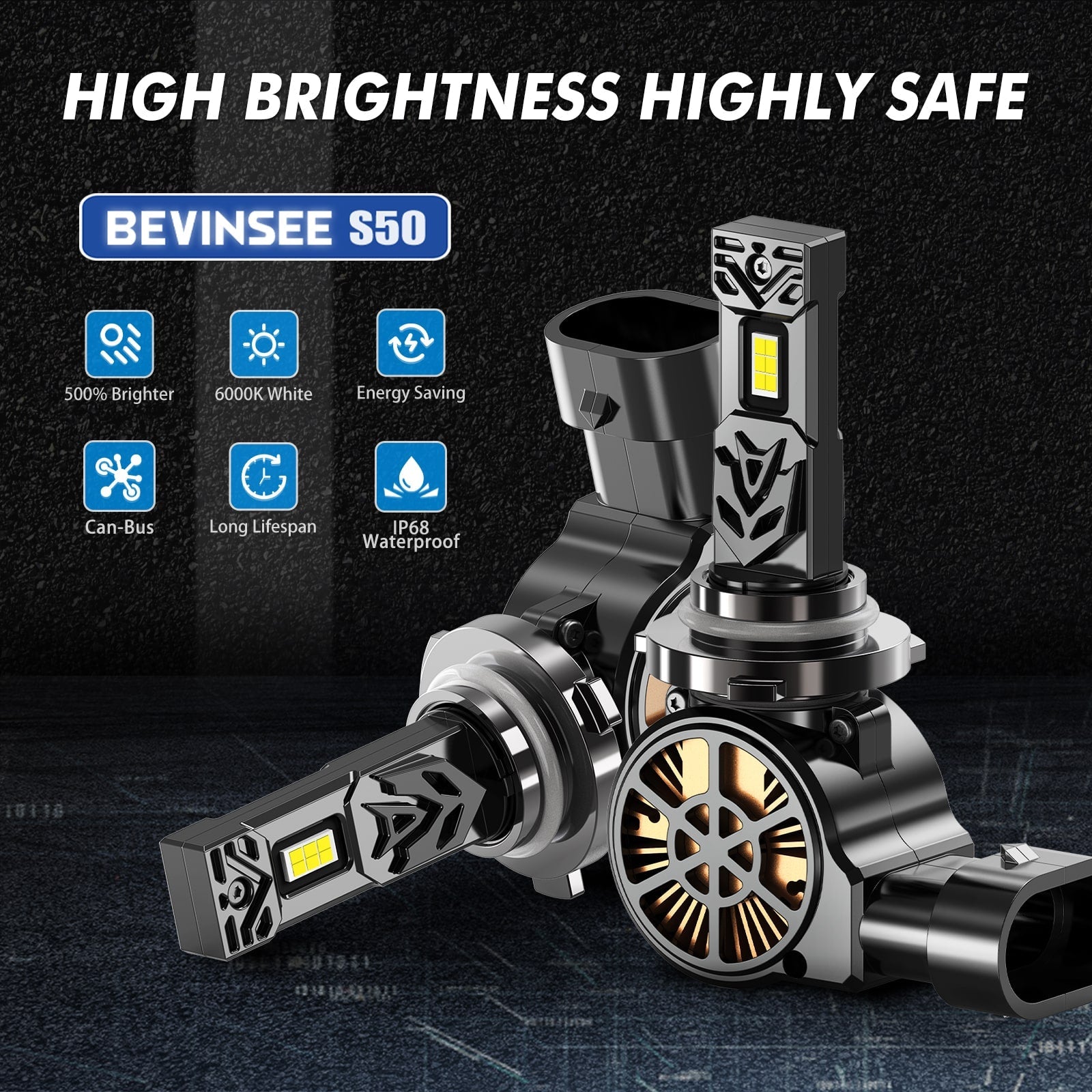 - 500% Brighter: Bevinsee S50 LED bulb adopt 2024 top automotive chips, 500% brighter than stock halogen. 6000K white light allows you to see farther and wider during night driving