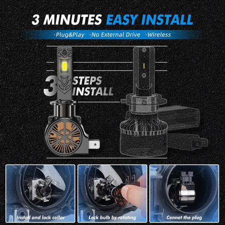 【99% Vehicles Compatibility】BEVINSEE S50 LED Headlight bulb upgraded the internal intelligent IC driver and improved performance to fit most vehicle systems. Mostly close to the wattage of halogen bulbs to reduce the occurrence of CANBUS problems. No error warning, No more flicker and radio interference.