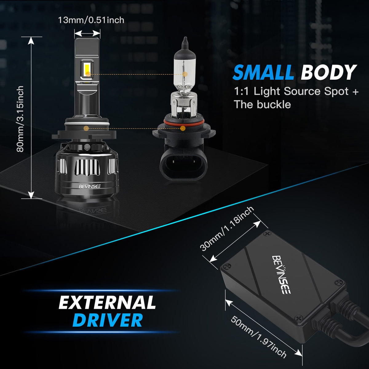 - 600% BRIGHTER THAN HALOGEN - With powerful 120W output and 22000LM super bright, Bevinsee 9006 led headlight bulb 6000k provides clearer visibility for you to see the road, potential obstacles, and other vehicles more clearly, enhancing visibility for safer driving.
