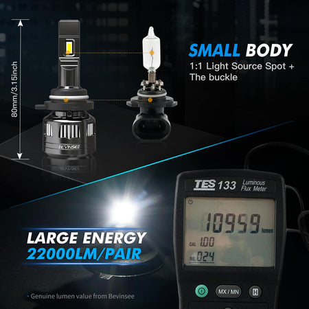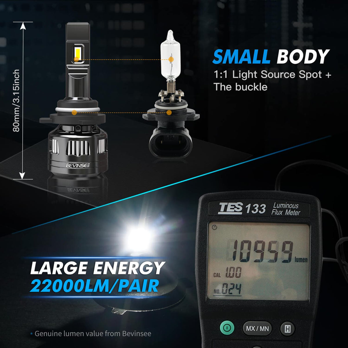 - 600% BRIGHTER THAN HALOGEN - With powerful 120W output and 22000LM super bright, Bevinsee 9012 led headlight bulb 6000k provides clearer visibility for you to see the road, potential obstacles, and other vehicles more clearly, enhancing visibility for safer driving.