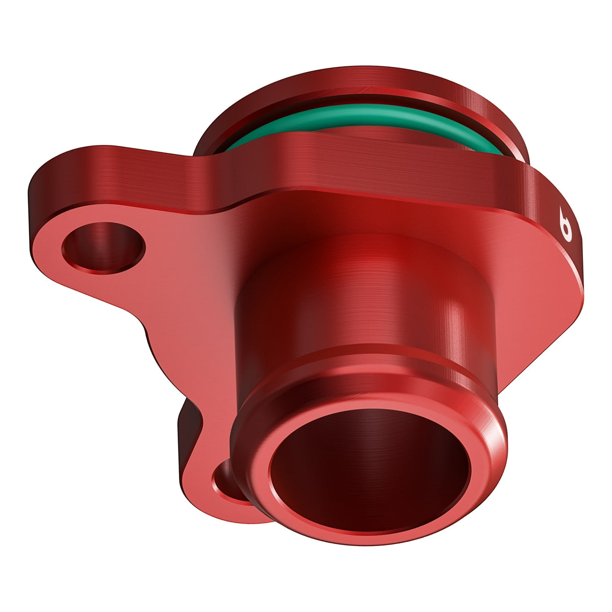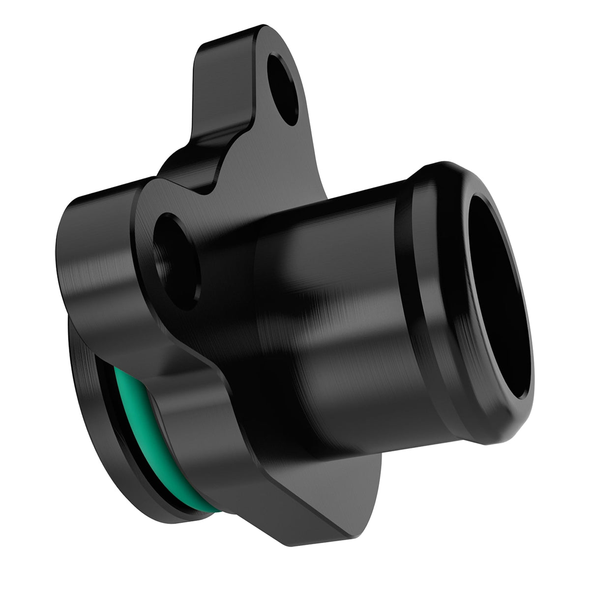 Some of the biggest issues when owning a BMW can come from cooling system components. Even through years of improvement, the same failure is seen with the plastic fittings and adapters from years of hot to cold temperature fluctuation. The N54 engine sees failure at the plastic cylinder head outlet adapter connecting the cylinder head to the thermostat hose. The stock plastic adapter simply shears off at the end of the barbed fitting, creating a massive coolant leak.