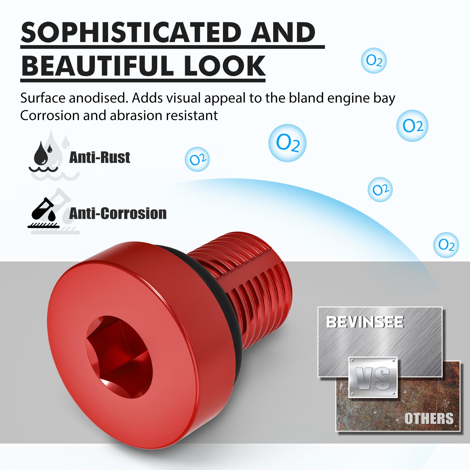 - Sophisticated and Beautiful Look - Surface anodised. Adds visual appeal to the bland engine bay. Corrosion and abrasion resistant.
