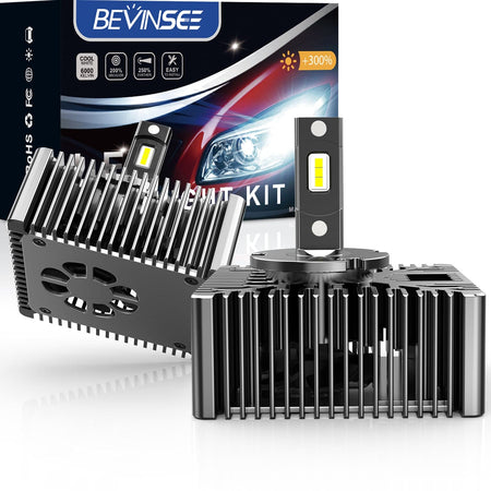 - 220% BRIGHTER: Bevinsee D5S LED headlight adopts 3570 LED beads, 6000K white light, 220% brighter than HID Xenon lamp, up to 7000lm/pair. Because of the low light decay rate of led bulbs, you can use for a long time, will not change the color temperature.