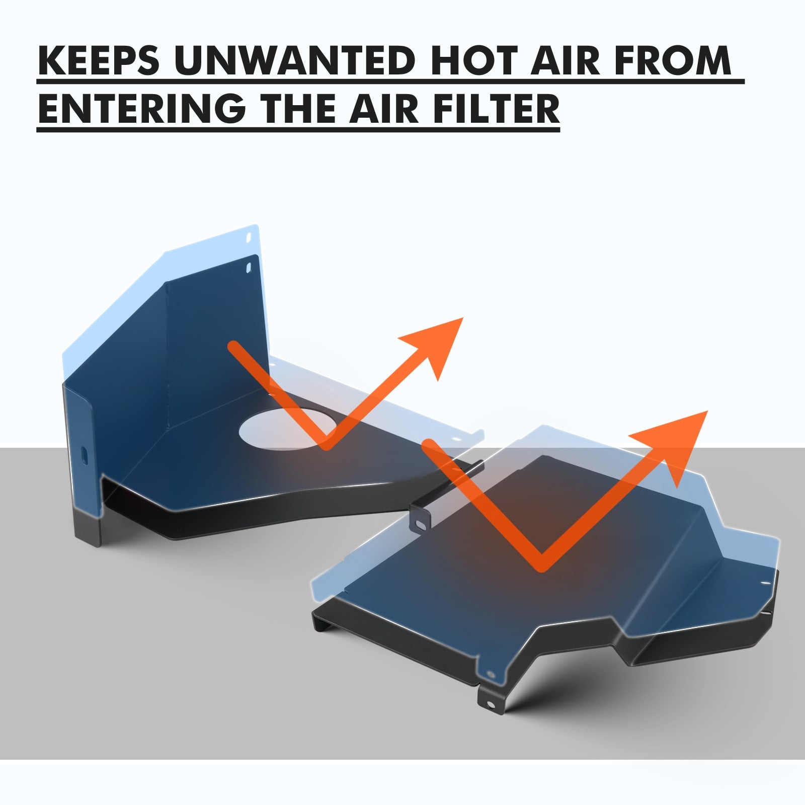 - Black powder-coated heatshield keeps unwanted hot air from entering the air filter.