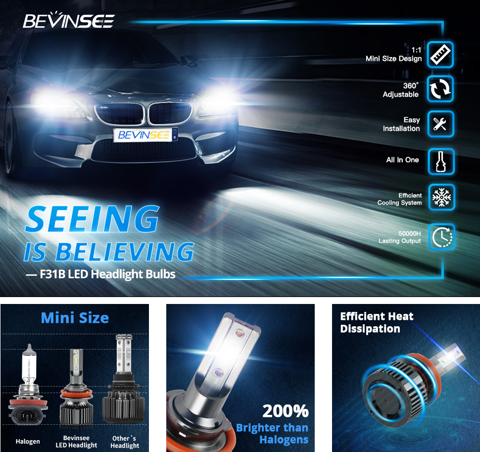 BEVINSEE F31B H11/H8/H9 LED Bulbs 6000LM 50W Per Pair