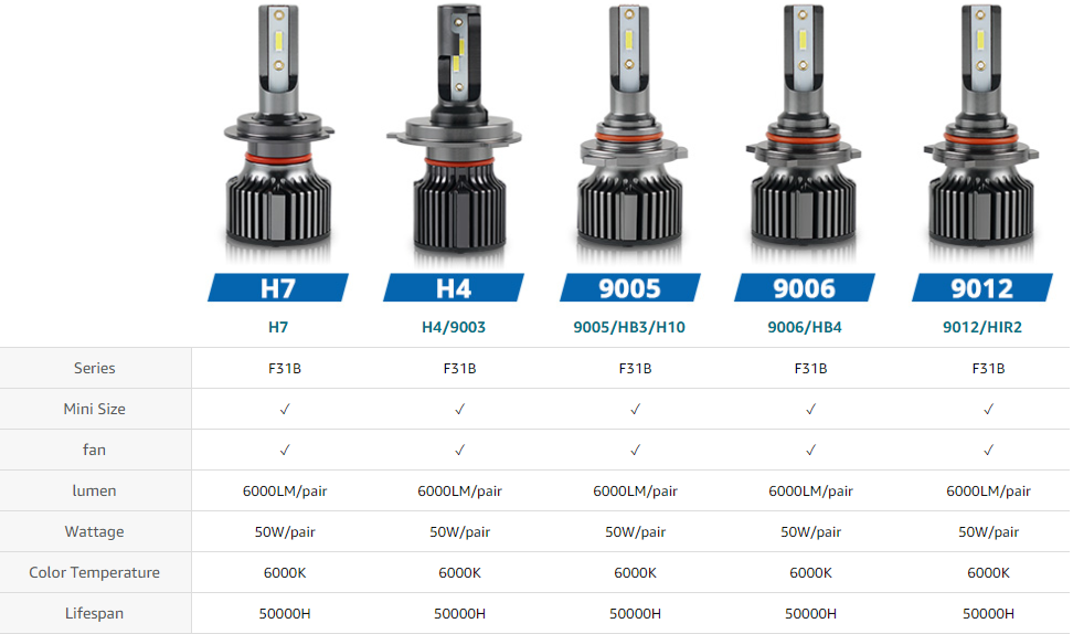 - 【200% Brighter Than Halogen】These H11/H8/H9 led headlight bulbs with newest CSP chip are 25% higher than the ordinary chip. Each pair of bulbs is 6000LM, 50W, 6000K xenon cool white.