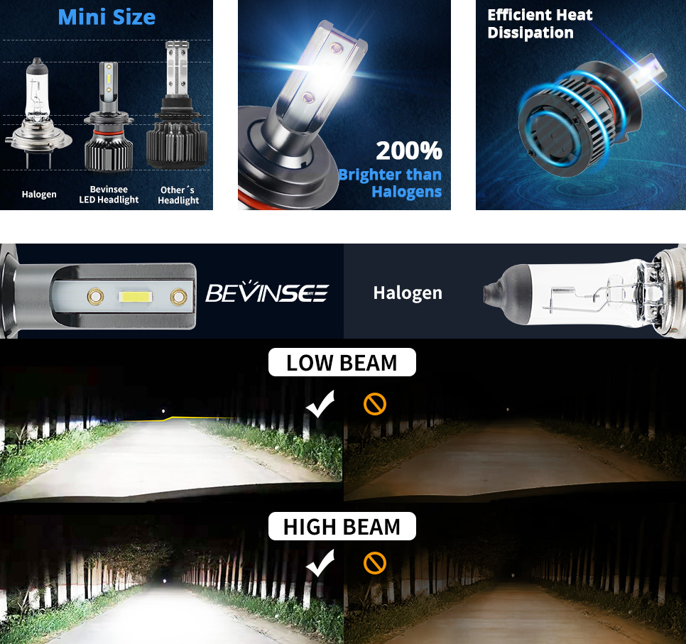 BEVINSEE F31B H4/9003 Mini LED headlight bulbs