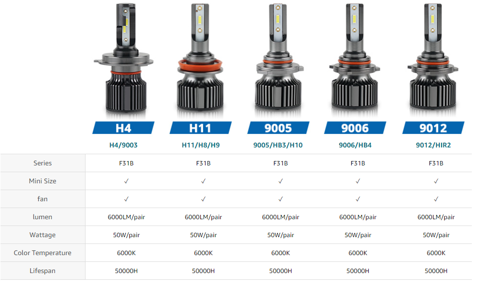 - 【200% Brighter Than Halogen】These H4/9003/HB2 led headlight bulbs with newest CSP chip are 25% higher than the ordinary chip. Each pair of bulbs is 6000LM, 50W, 6000K xenon cool white.