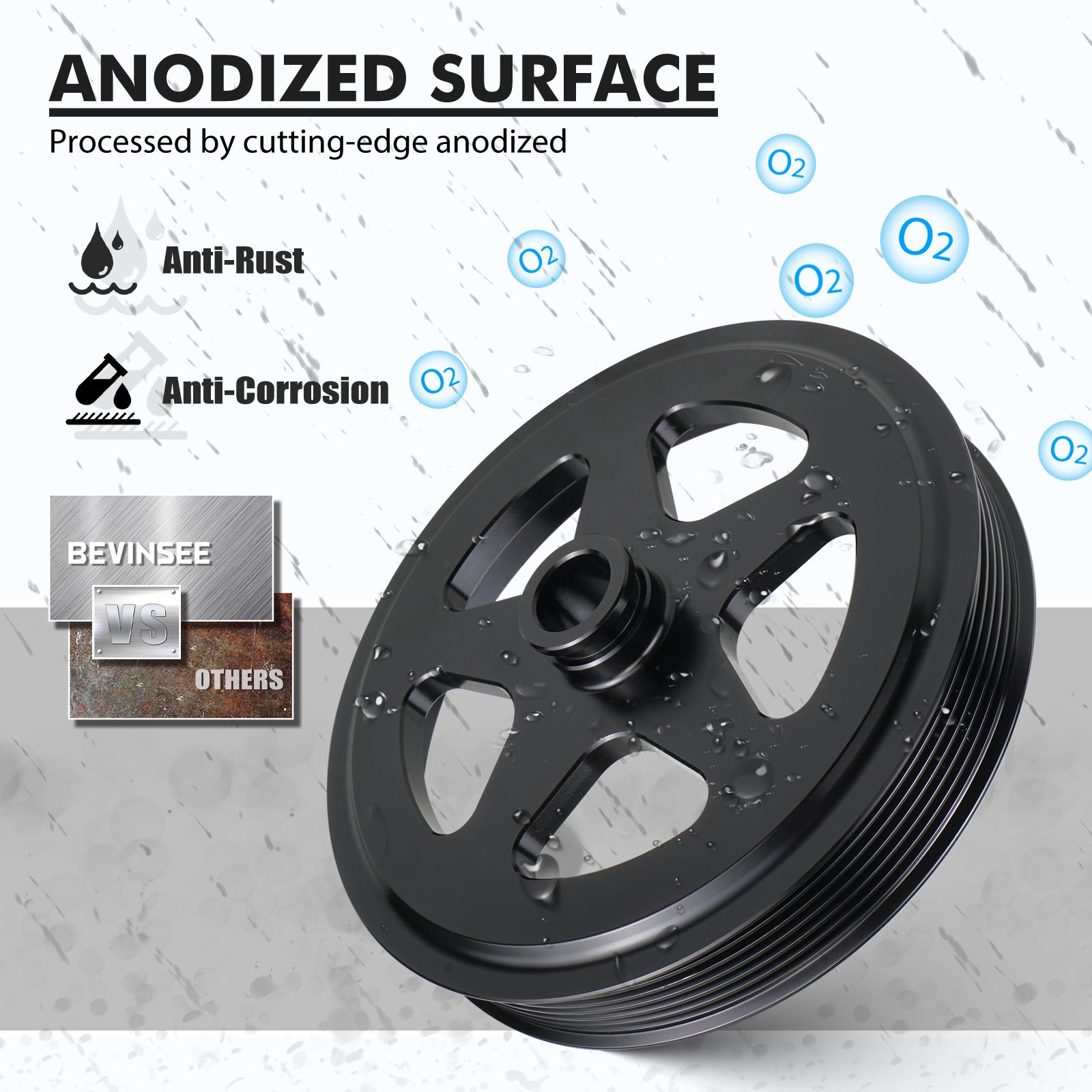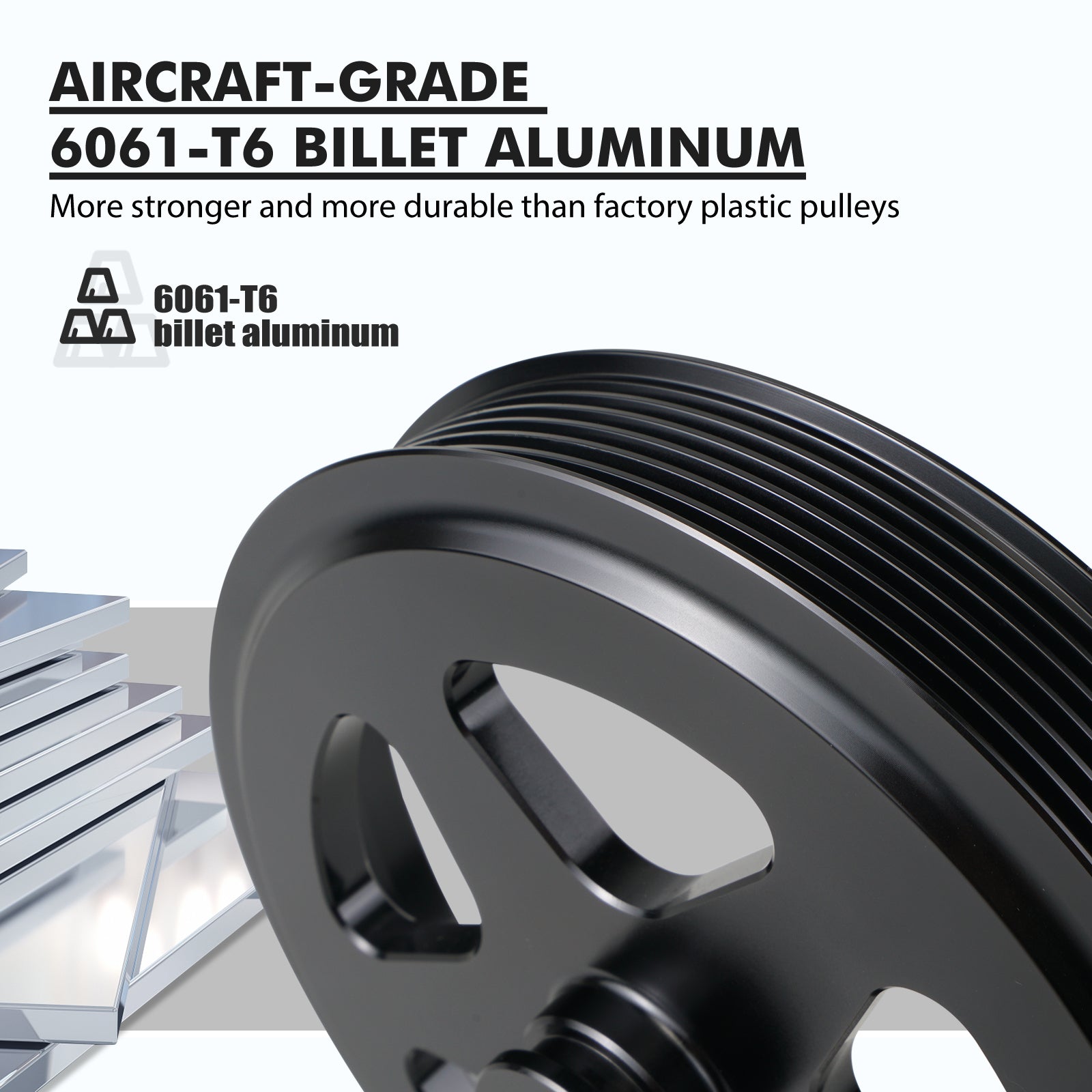 - Billet Aluminum - More stronger and more durable than factory plastic pulleys. No more need to replace plastic parts every time.