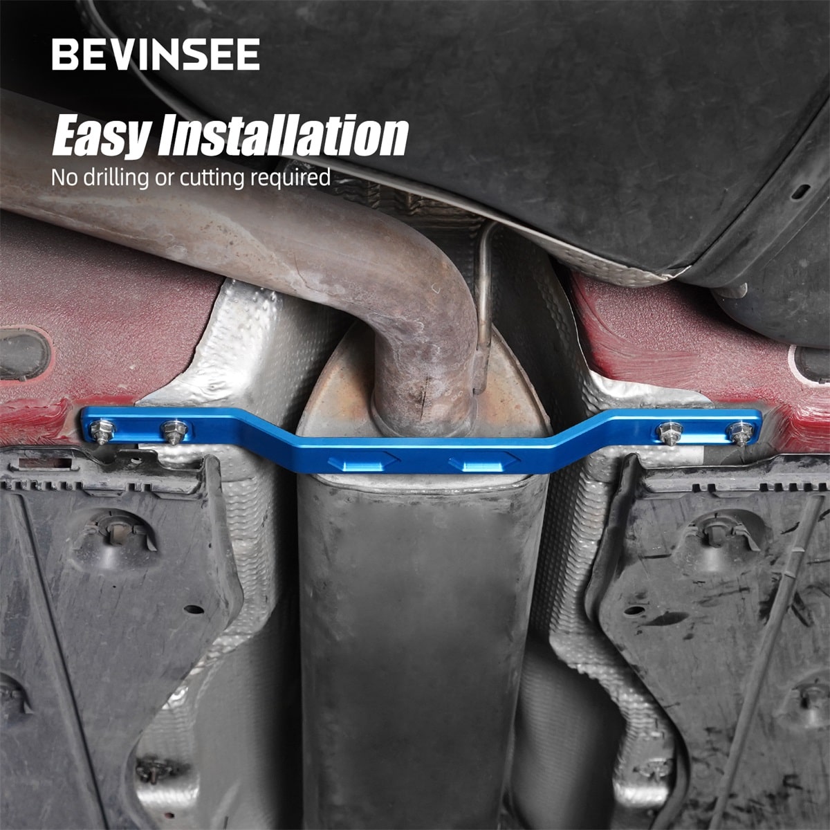 - 【Enhanced Strength】Upgraded from the factory thin stamped-steel to a sturdy 8mm thick 6061 aluminum alloy, BEVINSEE tunnel braces reinforce the body's weaker points, reducing chassis flex under high loads.