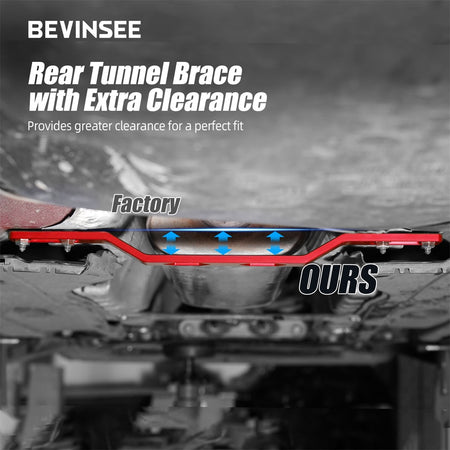 - 【Enhanced Strength】Upgraded from the factory thin stamped-steel to a sturdy 8mm thick 6061 aluminum alloy, BEVINSEE tunnel braces reinforce the body's weaker points, reducing chassis flex under high loads.