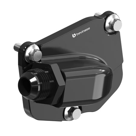 - ORB10 female billet tensioner drain port and fitting, allowing connection using standard AN10 hose and fittings.