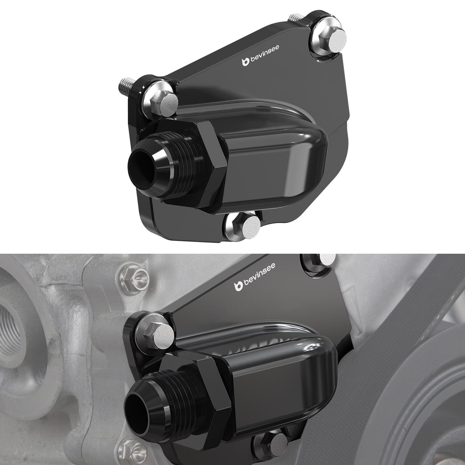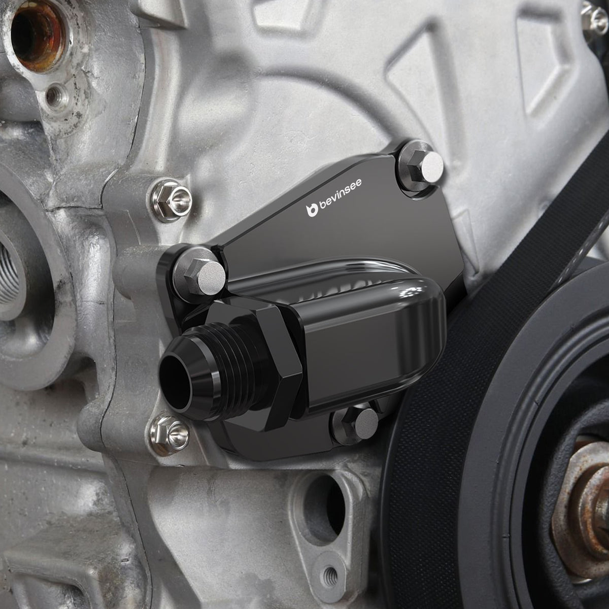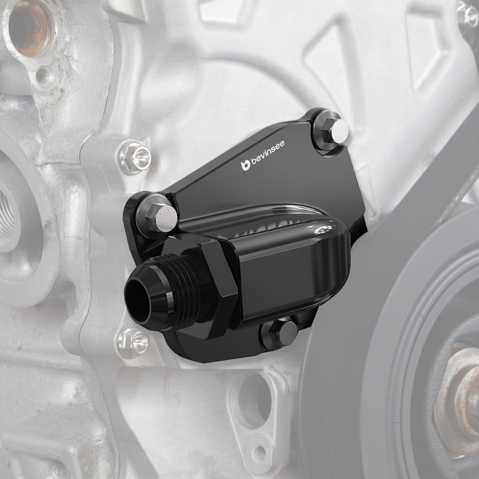 - Our billet Timing Chain Tensioner Cover with integrated Turbo Oil Drain provides an effective way to integrate the oil return, ultimately saving the hassle of removing and modifying the oil pan.