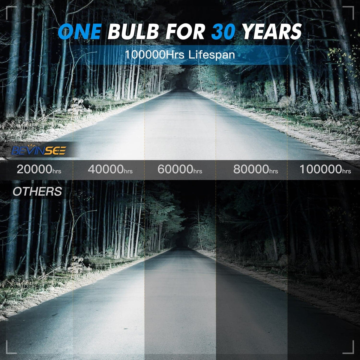 - 600% BRIGHTER THAN HALOGEN - With powerful 120W output and 22000LM super bright, Bevinsee 9005 led headlight bulb 6000k provides clearer visibility for you to see the road, potential obstacles, and other vehicles more clearly, enhancing visibility for safer driving.