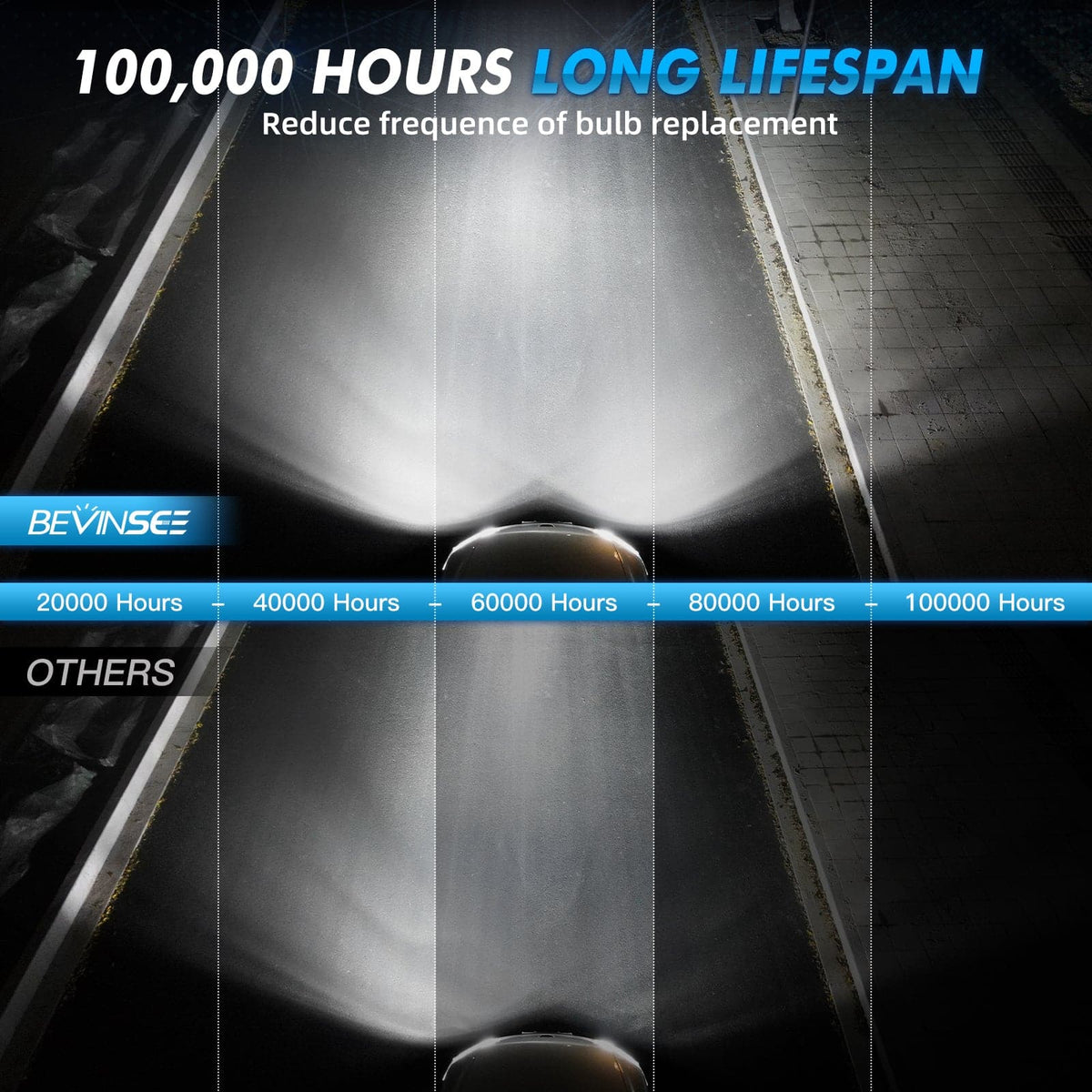 - Error-Free & Interference-Free - Equipped with Canbus ready technology, which ensures no error warning or flickering, and EMC technology that prevents interference with your car's radio. Upgrade to Bevinsee led h7 headlight bulb and experience a seamless upgrade to brighter, clearer, and safer lighting. (Note: There are still some sensitive models that cannot be decoded!)