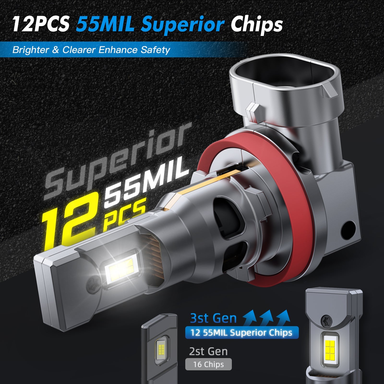 7-Year Long Lasting Lifespan - With its triple cooling system, H11 LED headlight bulb can last up to 7 years. Whole aviation aluminum body design, intensive fin heat sinks, and 15,000RPM silent turbofan ensures efficient cooling. This facilitates H11 LED headlight bulb to work consistently and extends its lifespan to 60,000 hours. Say goodbye to the hassle of frequently replacing bulbs.